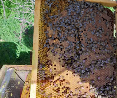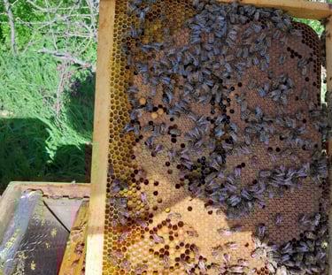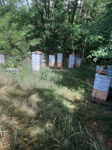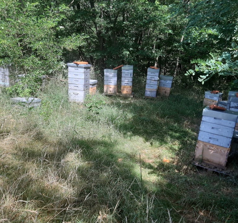 Je produis le miel de printemps sur les mêmes ruchers d'hivernage. Vient ensuite la récolte du miel d'acacia.